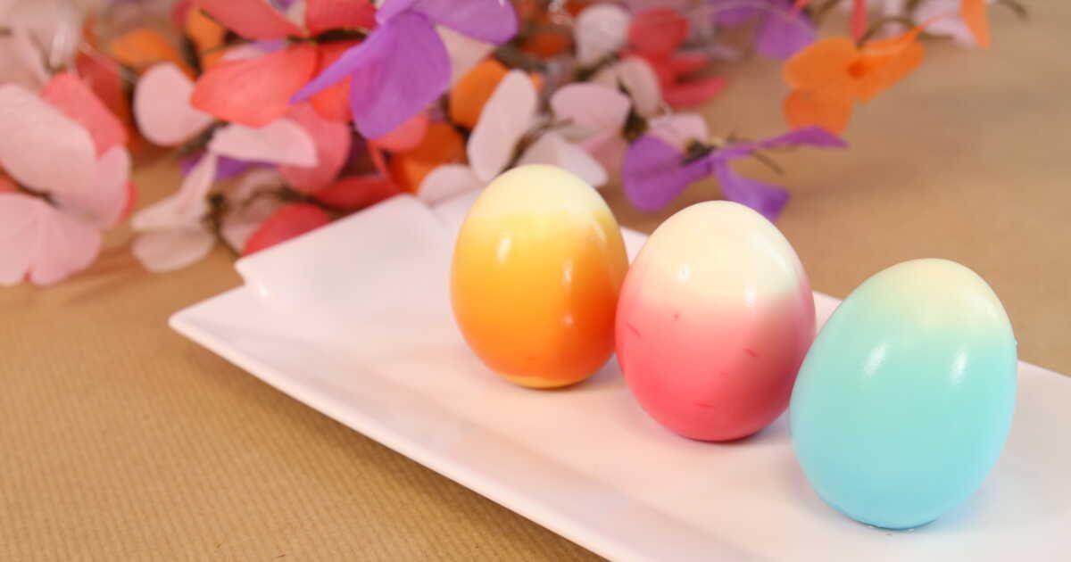 Pour réaliser des oeufs de Pâques en tie & dye, il vous faut des œufs durs et des teintures alimentaires. La méthode est simple :