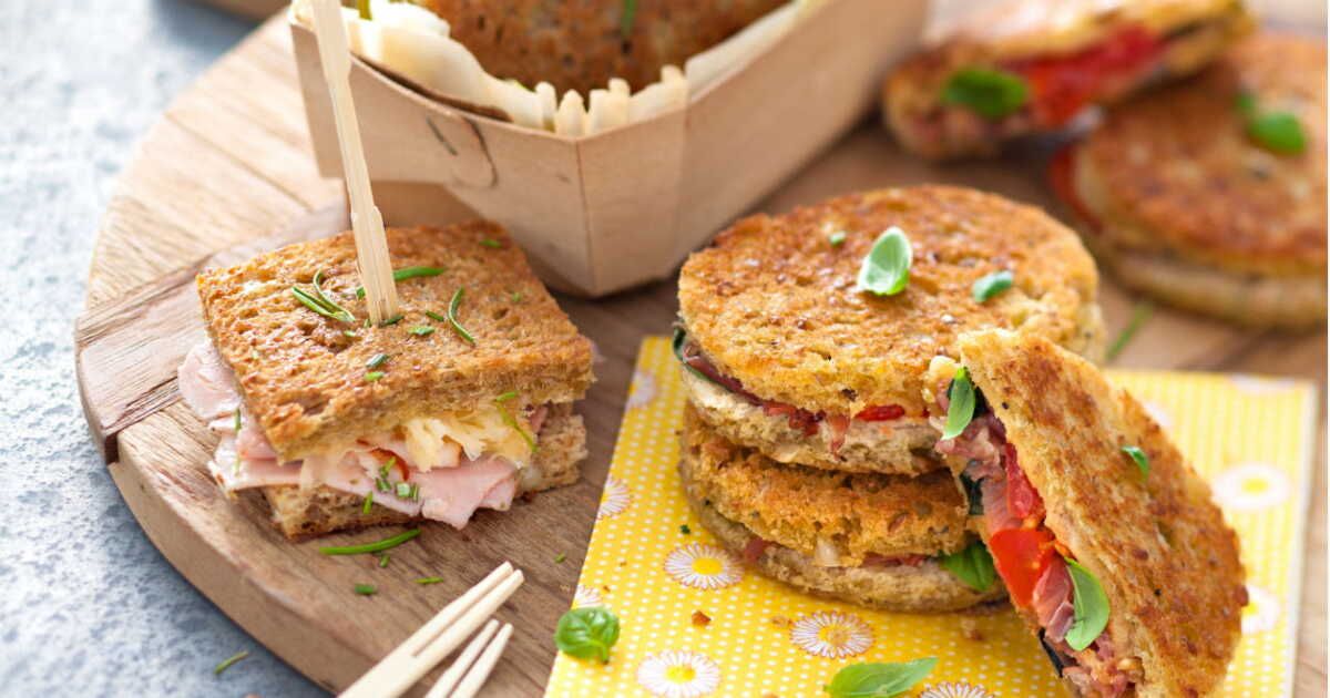 - Beurrez les tranches de pain et garnissez-les de fromage et de jambon ou des légumes de votre choix.